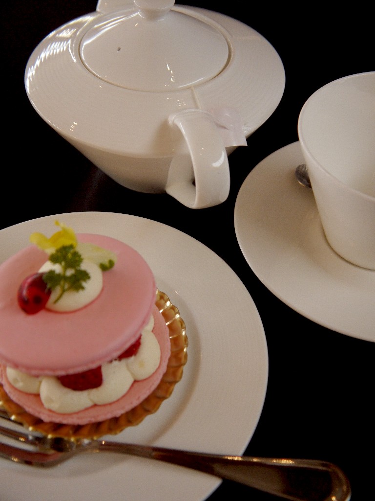 今回、ケーキにストロベリーマカロン、ドリンクにブリリアント・ブレックファストを選んだ。
