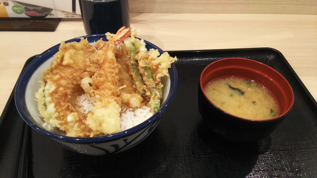 天丼のセットは500円でみそ汁つき、提供時間も早かったのでなかなか利用しやすいお店だと思います。ちょっとした空き時間の利用に最適です。