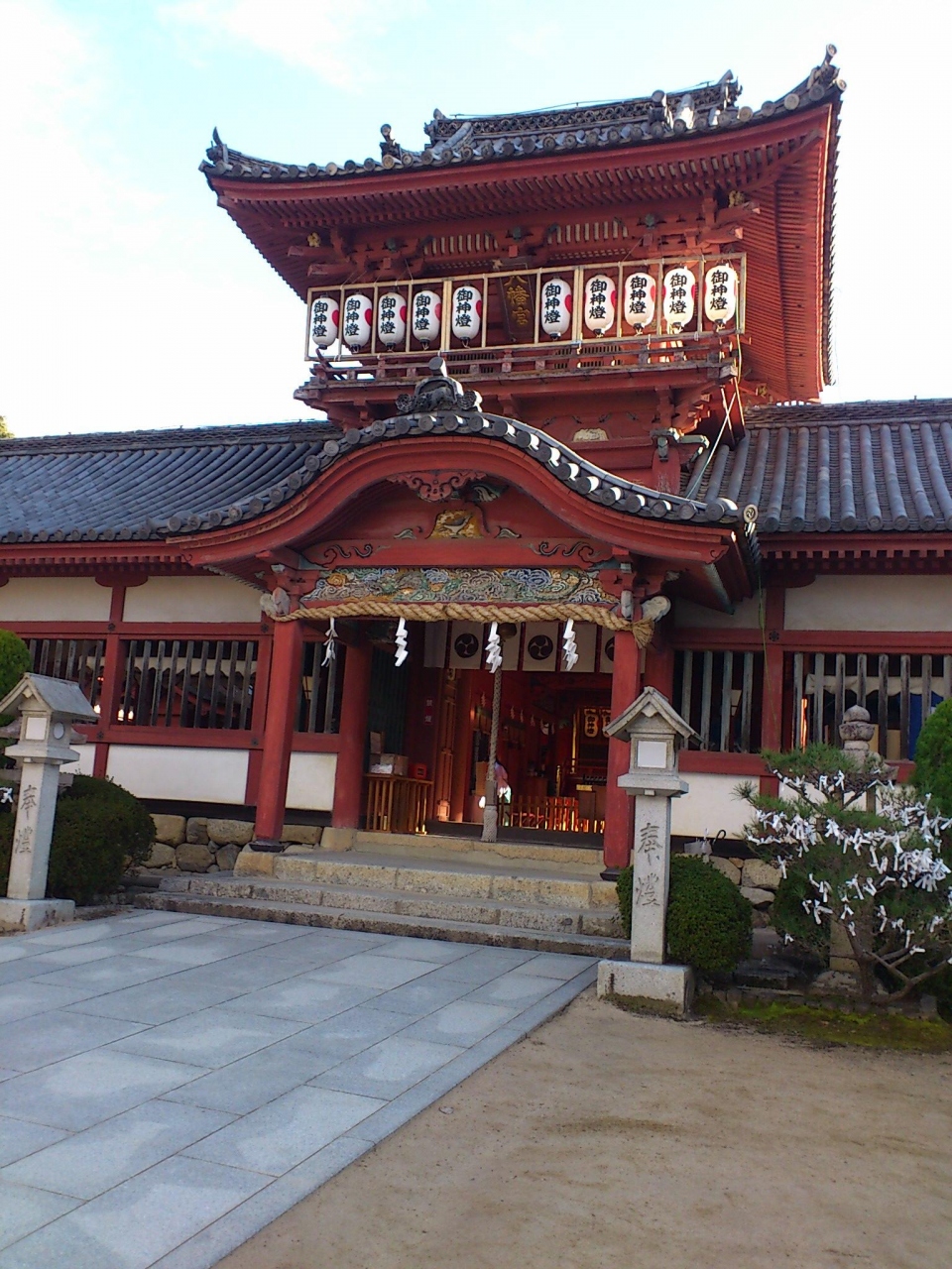 松山の路面電車の終点、道後温泉駅で降りて、坊ちゃん時計のある広場に向かいました。そこから道の向こうに長い石段が見えます。それがこの伊佐爾波神社への石段です。道後の七郡総鎮守というこの辺りでは立派な神社です。息を切らして石段を登りましたが、その甲斐があるほど立派な神社でした。石段の途中の左側には、湯神社という名の道後温泉を守護する神社もあります。