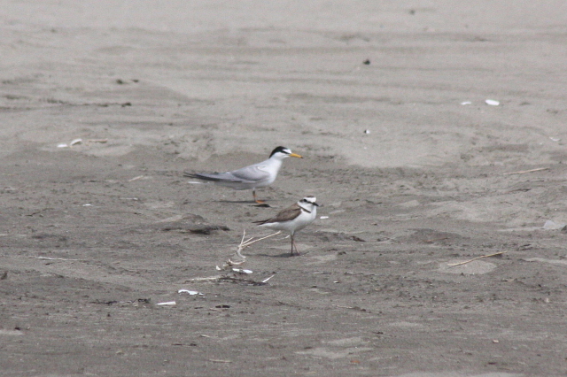 今回、平井海水浴場では、シロチドリはコアジサシの営巣地の傍でよく見られましたが、これは、コアジサシは外敵に対して集団で威嚇・攻撃する性質があるので、その傍で営巣することによって、外敵から卵を守っているのだそうです。