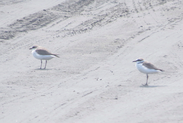 シロチドリは、一見、コチドリに似ていますが、コチドリのような黄色いアイリング(目の周りの部分)が無く、胸の部分の黒い帯が切れている個体が多いです。