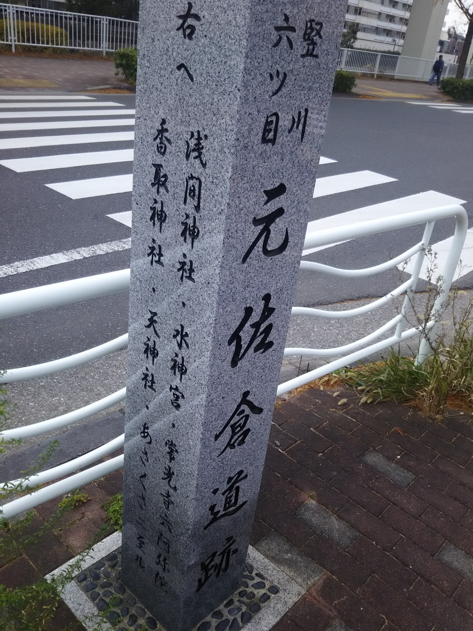 歴史上の街道の跡です、意識しないと気が付きません。日本の中世期の発展で、重要なエリアであったのがしのばれます。江戸と房総を結ぶ主要な道として機能していました。東大島駅から、城東病院に向い、城東病院の向かいの道路に記念碑があります。江戸と下総の街道としての当時がしのばれますが、今は名残もないです。よく意識しないと気が使いないので、事前によく確認して下さい。