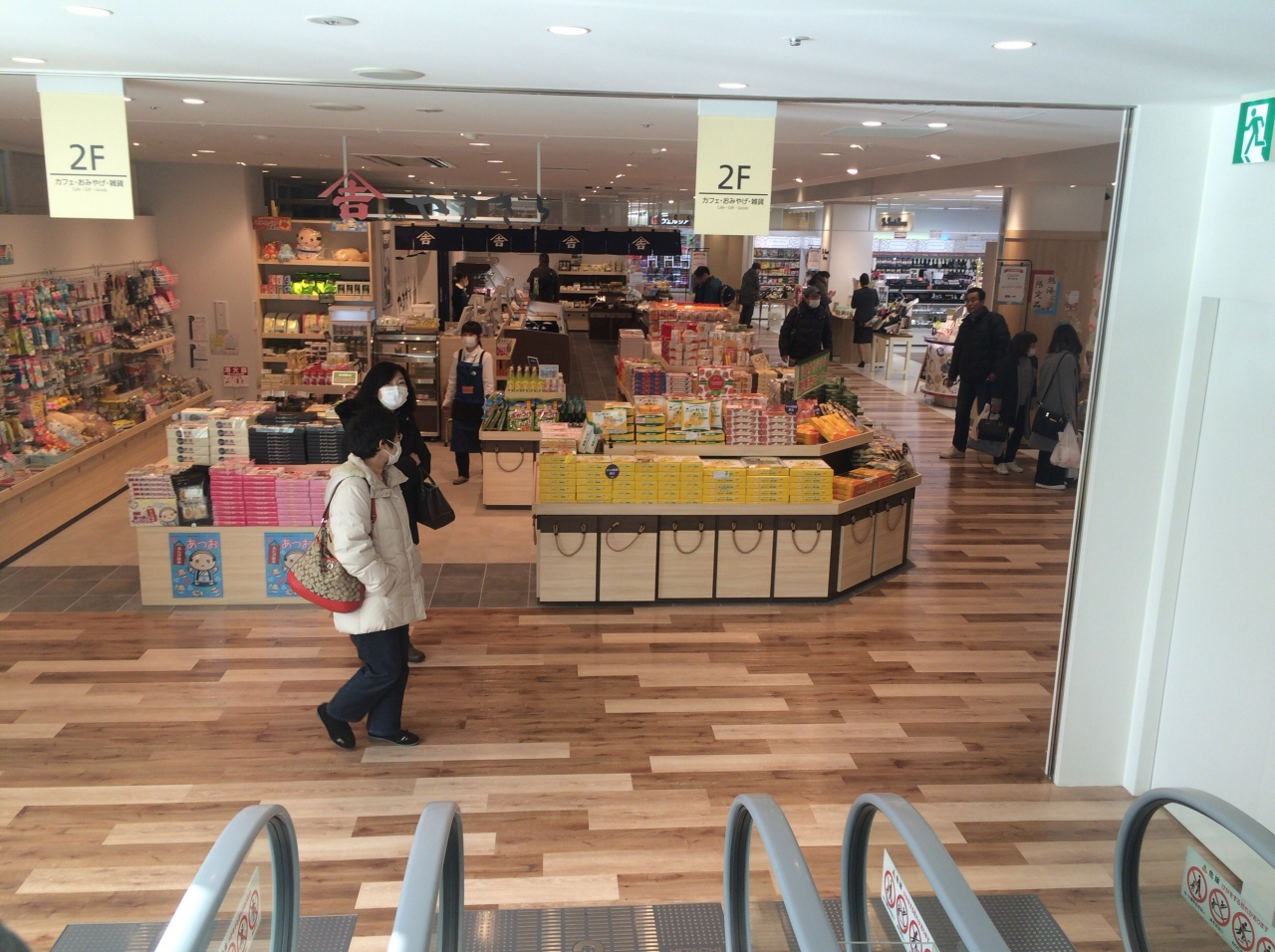 三階建て、一階は土産物屋でギッシリ、観光案内所も
