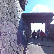 松山城に登るリフトを降りて、徒歩で天守閣を目指し登って行くと最初に潜る門です。石垣に囲まれた道を右に折れると、坂の上に門が見えます。名前の通り、門にはとがありません。敵を油断させるために、わざと門が無いのだそうです。