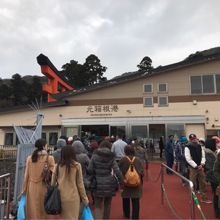 ロープウェイの桃源台から海賊船で40分ほどかけて到着する、箱根観光の中心地です。