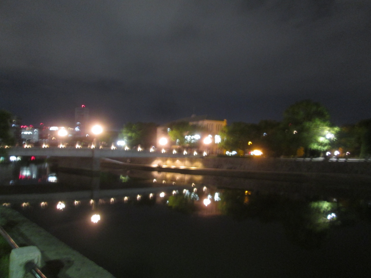 夜の時間帯に元安橋に通過しました。暗くなると周囲の元安橋はライトアップされ、他には、平和記念公園、原爆ドームは夜の景色がきれいでした。夜の時間帯であっても観光客を見かけましたが、夜景の散策は日中とは違った表情を見れて良かったです。