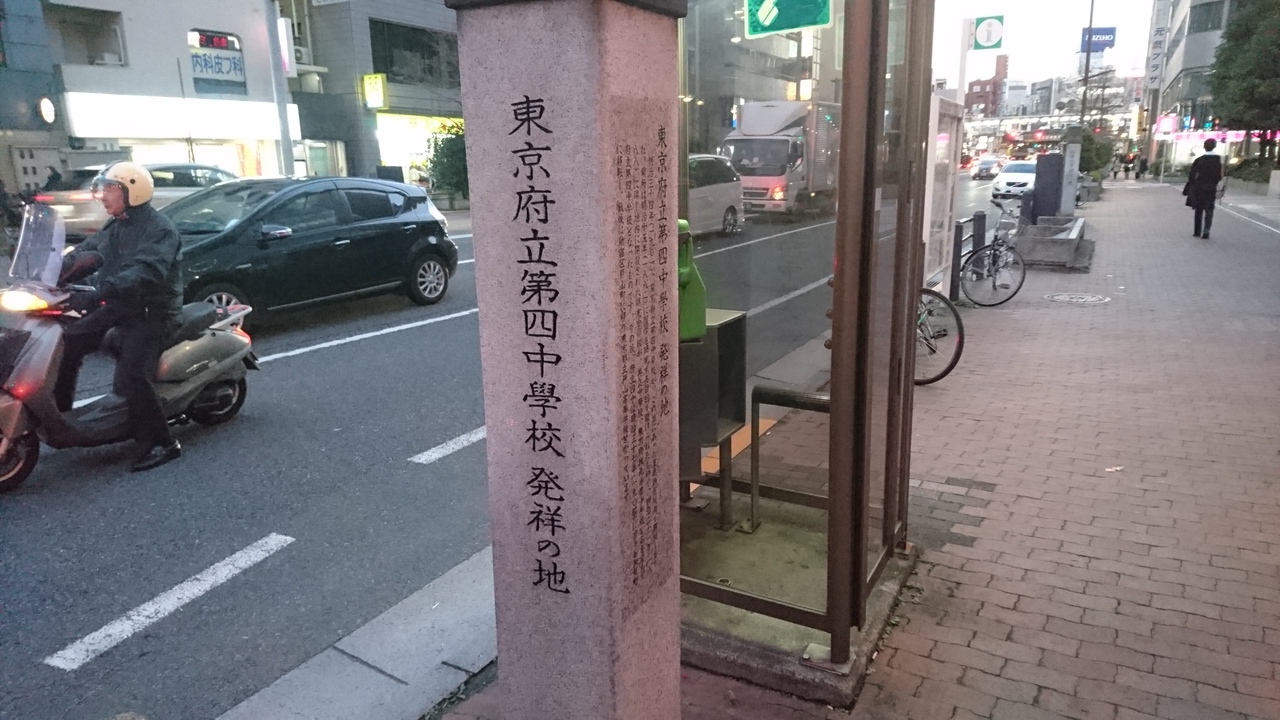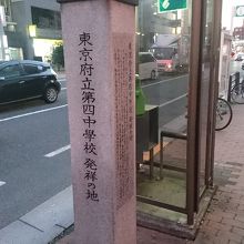 東京府立第四中学校発祥の地は、飯田橋駅東口から目白通りの信号を渡り、50mほど九段方面に進んだところにあります。