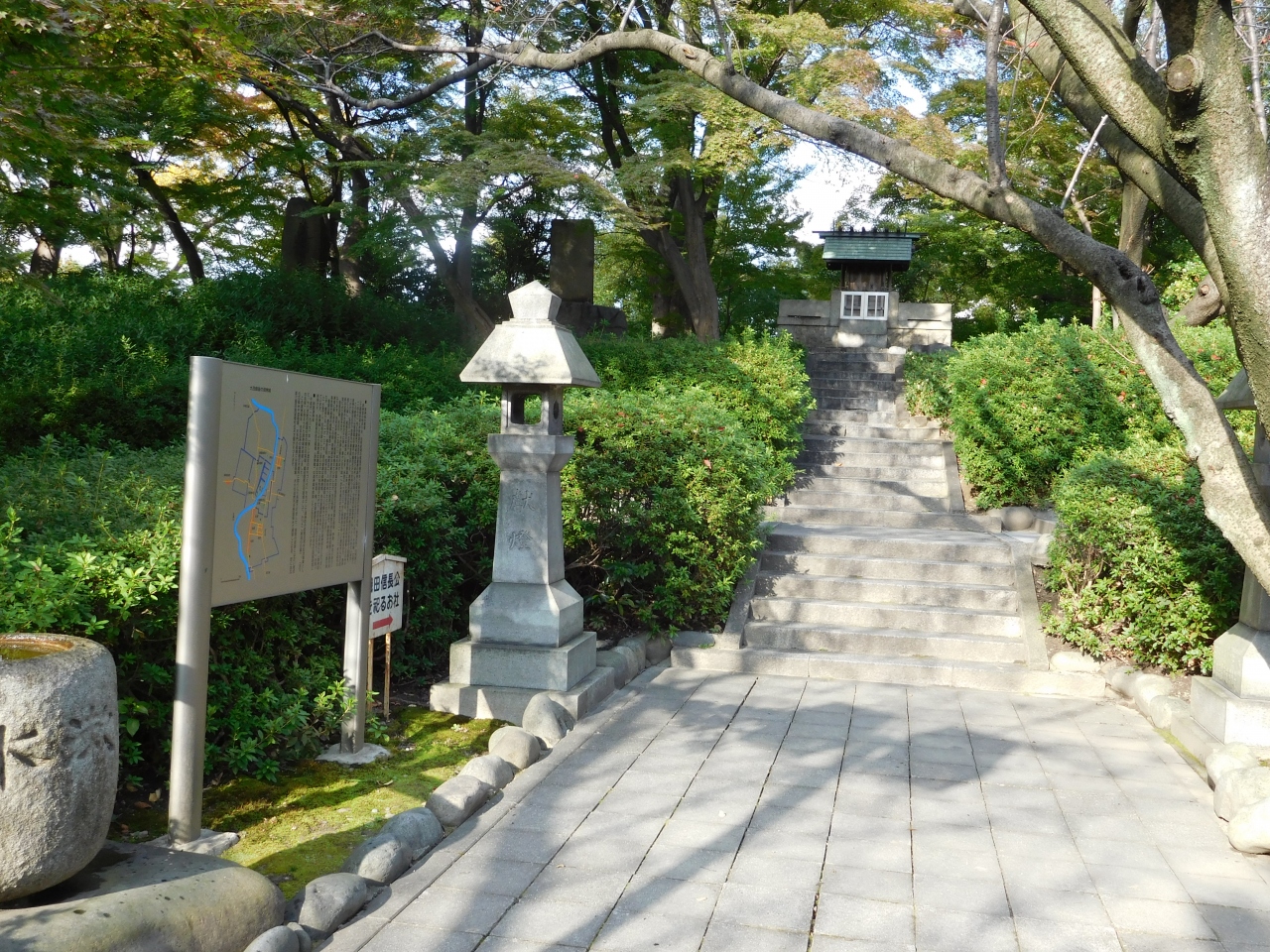 無料の「清洲公園駐車場」のすぐ側にあり、清州城へ向かう場合は、この公園内を通って行く事になります。東屋があったり、和の雰囲気が感じられる、とても綺麗に手入れされている公園でした。また、階段を上った小高い場所に、織田信長公を祀るお社もありました。