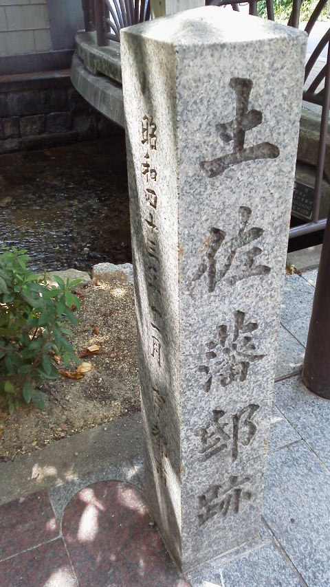 写真の碑があるだけで屋敷の名残のようなものはなく、区画もすっかり変わってしまっているのか、どんなふうに藩邸があったのかをその場で偲ぶことはできませんが、坂本龍馬もこの藩邸に立ち寄ったことがあったのかなぁなどと歴史を感じました。