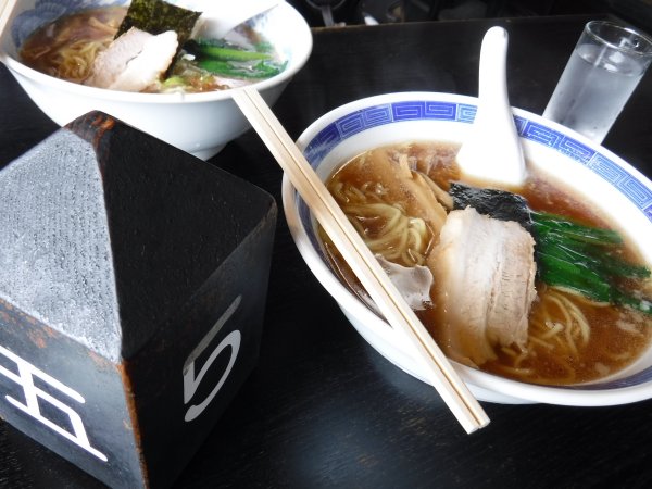 御殿場ICから乙女道路・箱根裏街道を箱根方面へクルマを走らせると、仙石原交差点手前の右側にあります。夕食、夜食にも利用したいところですが6時には終わってしまっています。何度か訪れてますが、夜遅くまで営業していたら、来店回数がとても増えていることでしょう。今回は、連れと喜多方ラーメンの醤油と塩をそれぞれ頼みました。店内の落ち着いた佇まいが好きです。テーブル上にある番号もなかなかの装飾品です。