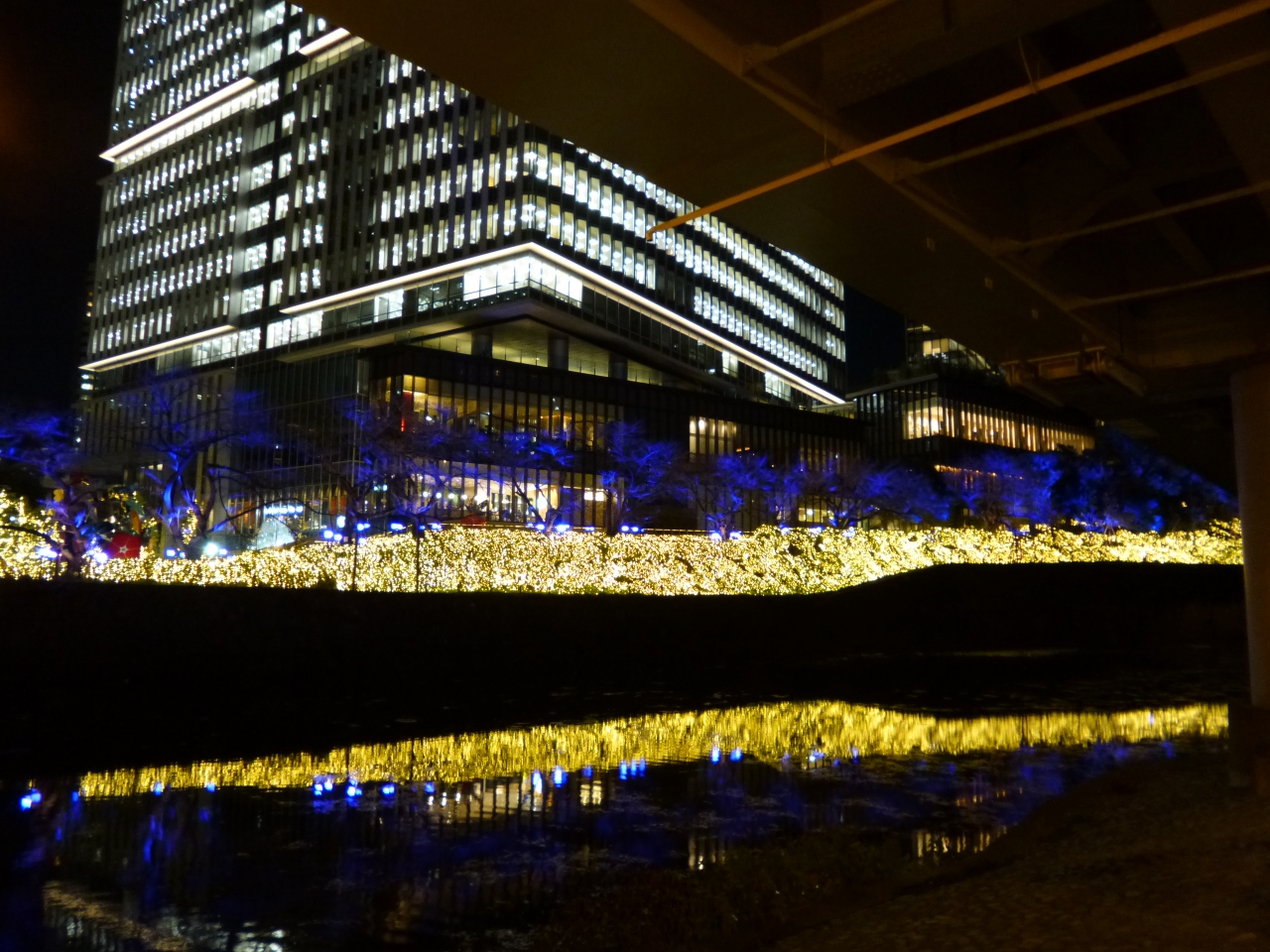 「東京ガーデンテラス紀尾井町」に向かうために弁慶橋を通りかかりました。12月という事もあってか、イルミネーションが施されており、大変美しい光景でした。写真を撮る人の姿も何人か見られましたが、目黒川のイルミネーションのような大混雑にはならず、穴場的光景と感じました。
