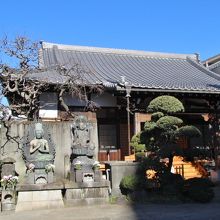 細い参道を進むと正面に本堂があります。本堂のすぐ前に露座の大日如来坐像と地蔵菩薩像が安置されています。