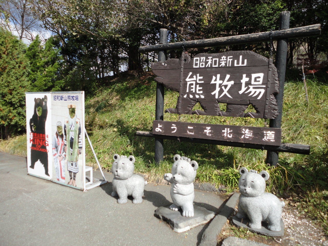 洞爺湖を通り過ぎて、まもなく昭和新山熊牧場の入り口に着けます。熊が居住するスペースは年齢でいくつかの場所に分かれています。入り口の手前から若い熊がいて、奥の方へいくほど壮年期の熊になっていきます。人が近づくと、ほとんどの熊が寄ってきて餌をちょうだいするポーズをとります。中には人間がするように、両手を合わせて拝むような仕草をして、さらには二本足で立ってこのポーズをする熊にはこっけいさが溢れます。熊のスペースの反対側にはアライグマの檻もあり、熊と同じように餌をねだるポーズには思わず笑ってしまいます。普通の動物園で見る熊よりも生き生きとしていて、ユーモラスな仕草もしますので見ていて飽きがこないです。
