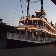 ウエスタンランドにある船着場からこの蒸気船マークトゥエイン号に乗ってアメリカ河を一周する船旅ができます。