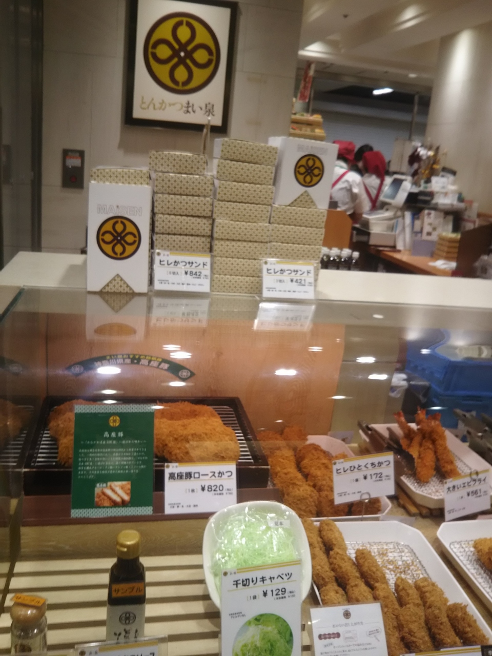 東京駅 グランスタ B1Fのマイセン、お店というよりコーナーです。東京駅には大丸にもありますが、移動の方向で使い分けしています。お店というより、総菜コーナーの一角という感じの店構えですが、商品は山積みで種類も豊富でです。カツサンド、この味はやはり癖になります。