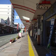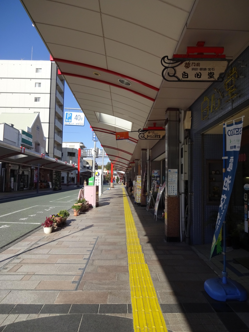 浅間神社の立派な山門がある前から駅方向につながる商店街。