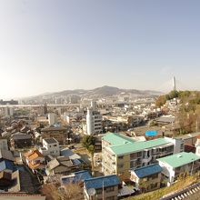 休憩舎の上からは池田の町が一望できます。