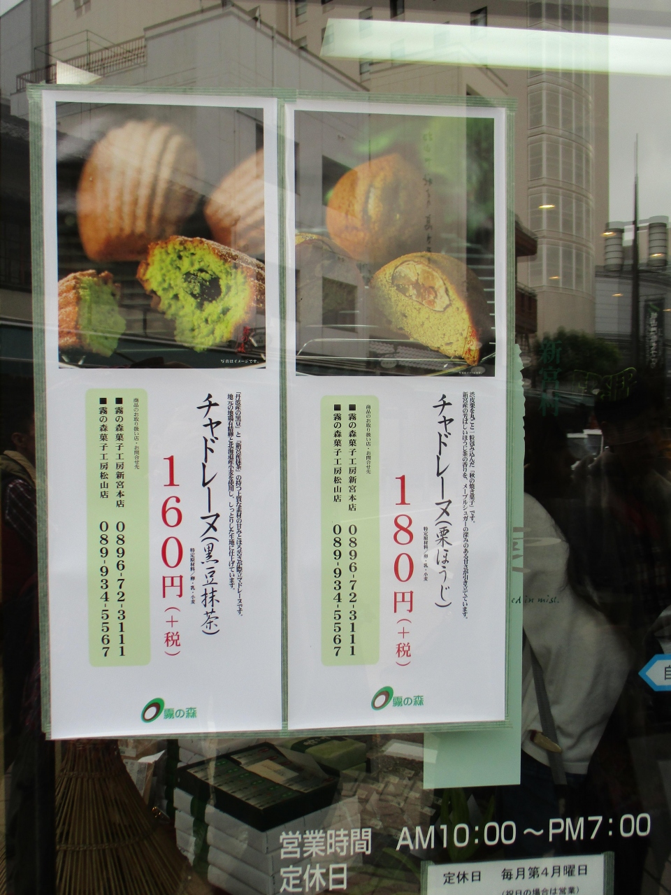 大街道の電停から松山城ロープウェイ駅へ続く通り、ゆるやかな坂道の両側に、みやげ物店や飲食店が並んでいます。秋山兄弟生誕地は、この通りから100m弱入ったところにあります。我々は日曜日の昼間にここを何度か通りましたが、松山城を訪れる多くの観光客で大変賑わっていました。