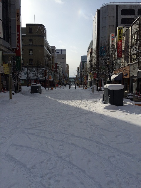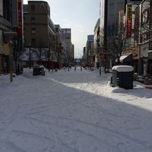 アーケードになってないので雪が積もっていました。一部ロードヒーティングによって歩きやすい部分もありました。