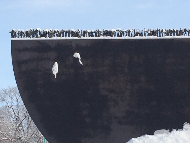 想像していたよりは人々の像が小さかったです。あと雪がかなり積もっていたので近づけなかったことがちょっと残念でした。