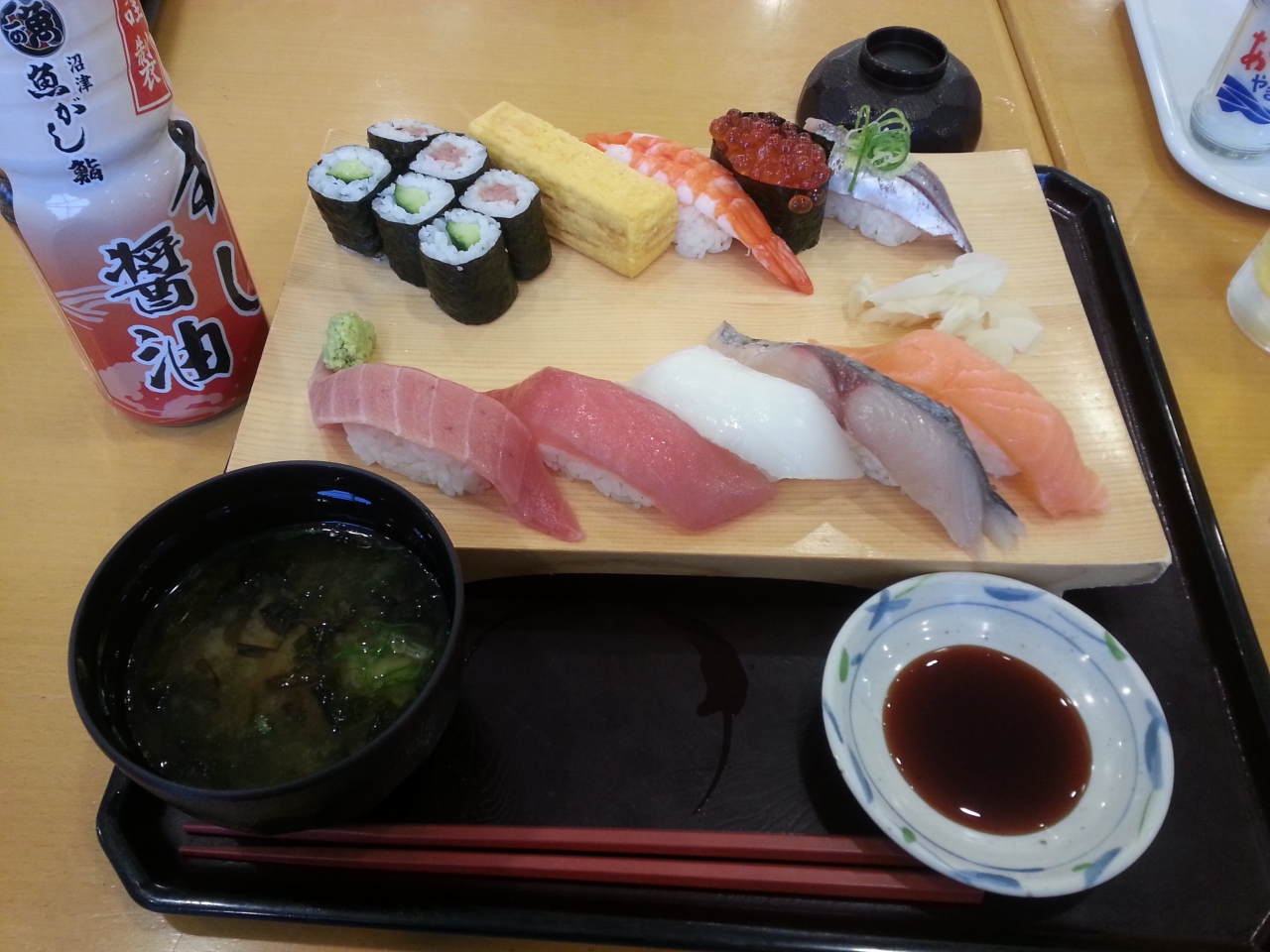 富士山静岡空港3階にある魚河岸寿司は新鮮な魚介類を使ったお寿司でとても高級感を感じました。味はもちろん最高です。ガラス張りの窓から飛行機の離着陸が見れました。ビール他飲み物もありました。店員も感じが良く対応して下さいました。