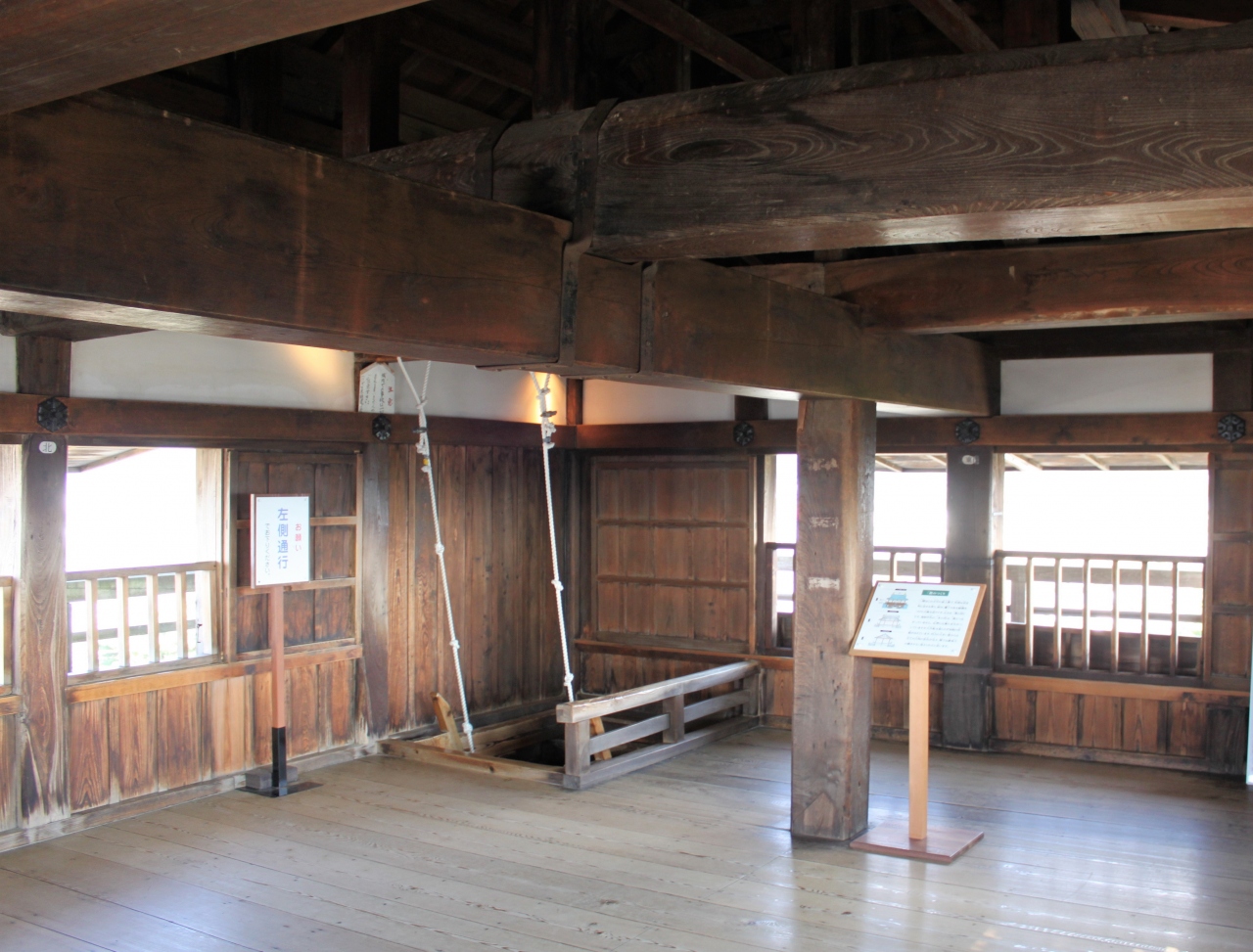 内部の梯子の様な急階段や柱や太い梁、現存天守ならではの風情がいいですね。