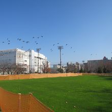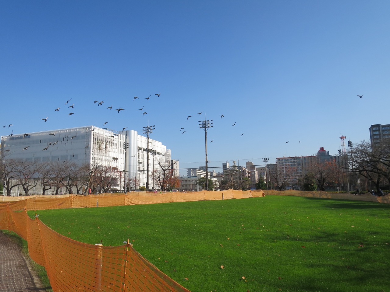 墨田区の町中にある公園です。周囲を高層ビルに囲まれていて眺望は特に優れているとは思えませんでした。しかし込み入った町中にあるので僅かな緑とはいえ落ち着く空間です。昼間は近隣の幼稚園児達の遊び場になっているようで、歓声が園内に響き渡っていました。