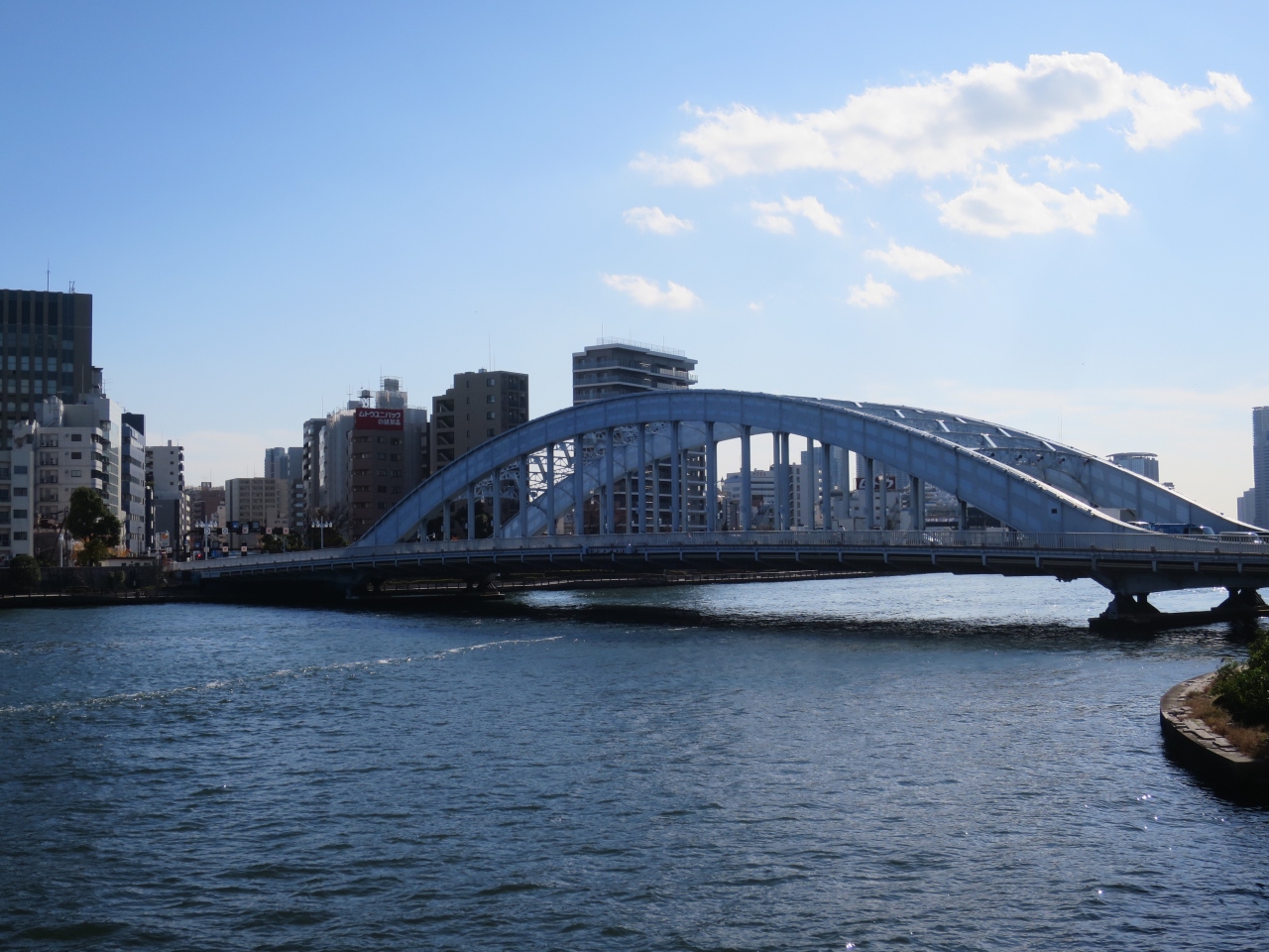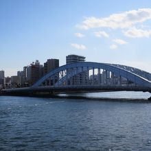 隅田川にいくつも架かる橋のひとつです。橋の構造については何もわかりませんが、優美なアーチの曲線を描く橋はとても女性的で優しさを感じさせます。永代通りという道路の名前もこの橋の名前が元になっているのではないでしょうか。橋の上を歩くよりも離れて見ていたほうが楽しい橋です。