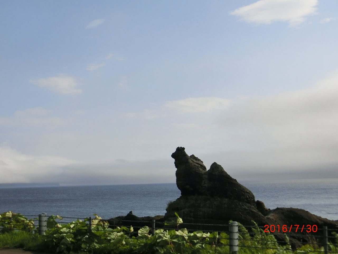 羅臼から相泊温泉への道すがら右の海岸にある天狗に似た岩