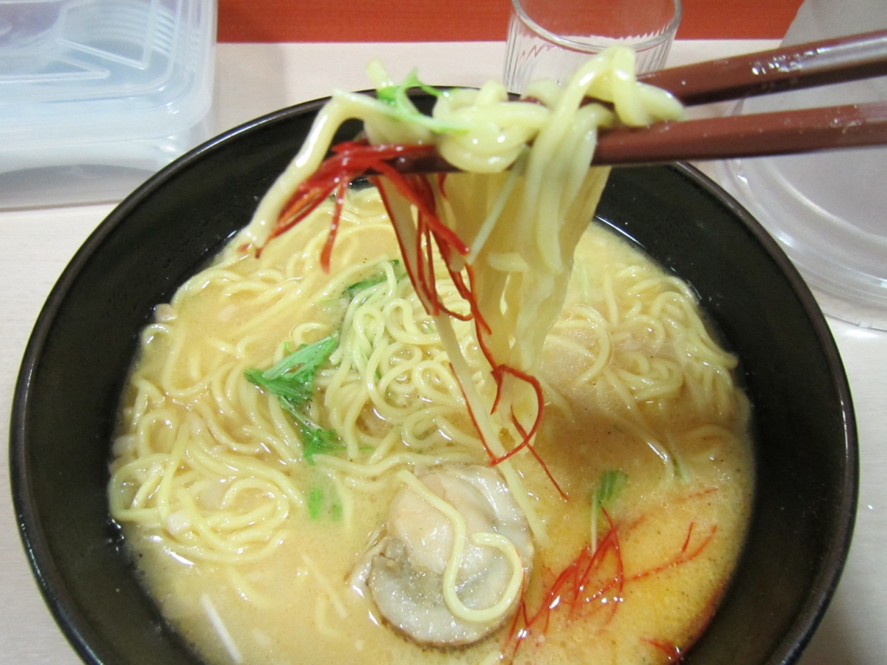しかし、具が入ったメニューは他にありますし、具が少ない分、とろとろの豚骨スープが更に堪能できました。