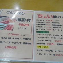 メニューに海鮮丼1日10食限定とあり、 時間は午後3時を過ぎていたので、もうないと思っていたが、聞いてみるとまだあるとのことなので注文した。980円。マグロ、帆手々外、エビ、海ブドウまでは分かるが、あと2品の刺身は何だかわからなかった。値段からするとまずまずだろう。お得とまではいかないが、特に不満はない。