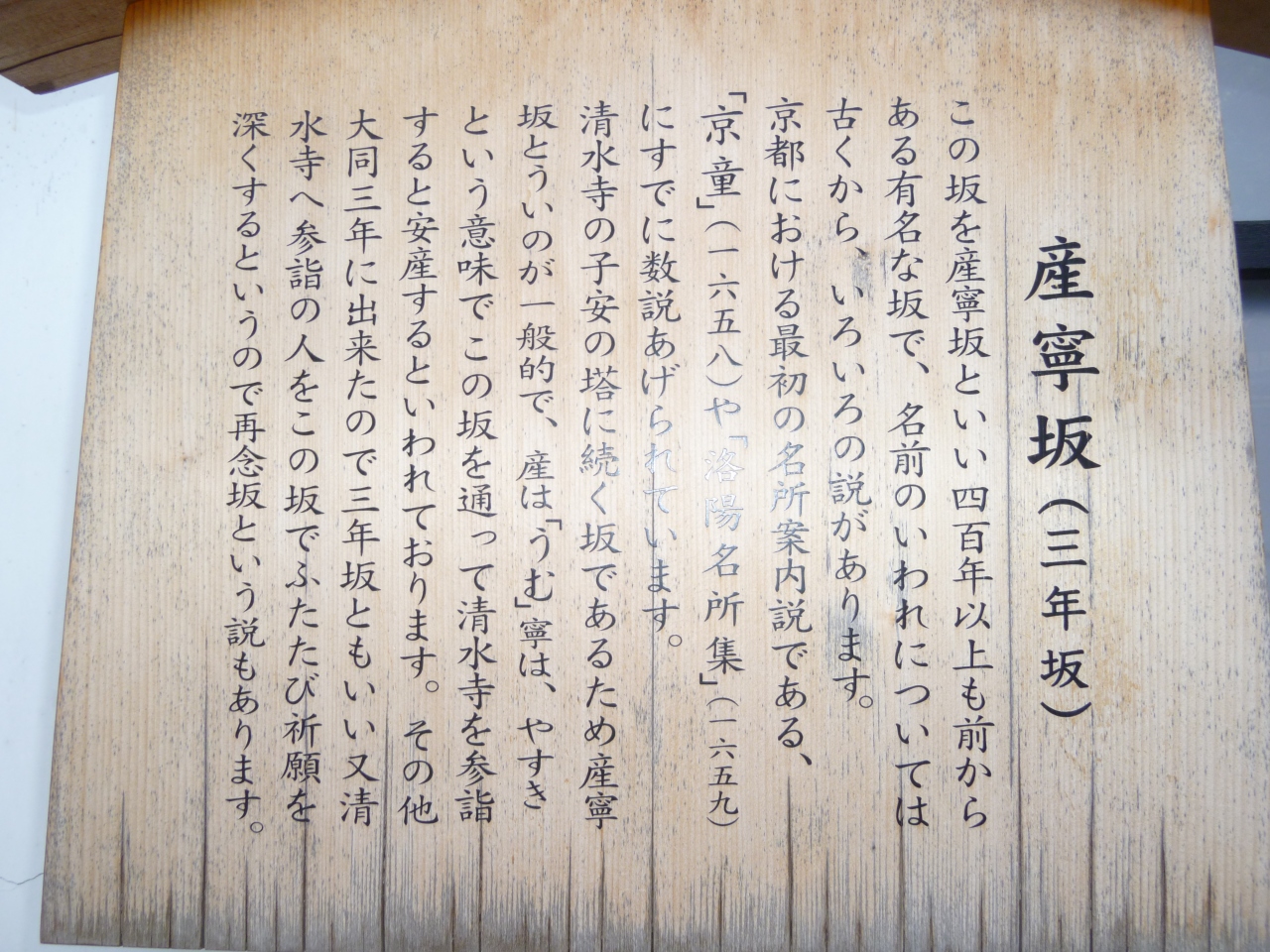 東山の北側の高台寺方面からだと二年坂を越えてT字でぶつかる八坂通を道なりに清水坂方面に向かうとその道が三年坂になります。