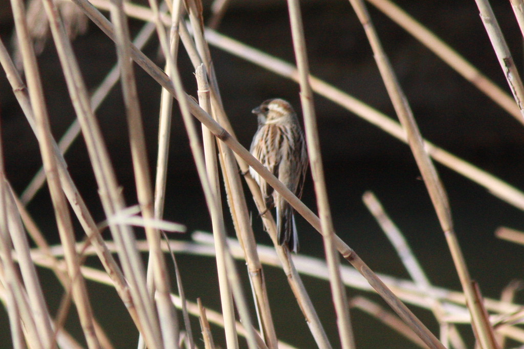 涸沼の湖岸には葦原が広がっている場所が多いので、冬季にはオオジュリンもよく見られます。今回も、葦原の中で何度もオオジュリンを見る事ができました。