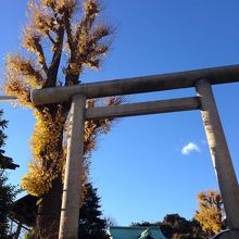木製ではない 鳥居が印象的で大きな銀杏の木との組み合わせがかっこいいです。