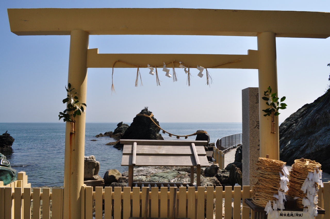 2016年の社員旅行で訪問しました。伊勢市の二見浦の海岸沿いにある神社で、沖合に夫婦岩があることで有名な神社です。駐車場から神社までの海沿いの参道からの景色が綺麗で、また人も少なかったせいかゆったりと歩く事ができてとても良かったです。海沿いに境内社もいくつかありました。蛙に縁があるのか、蛙の石像がたくさん置かれてました。海と神社の組み合わせがとても綺麗で良かったです。