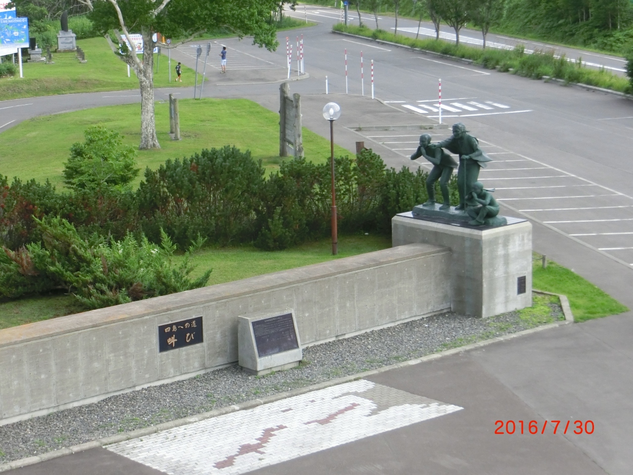 海の向こうの国後島に向かって叫んでいる像がありました。