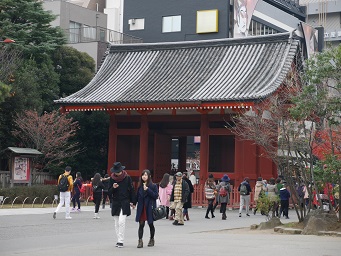 浅草神社の鳥居の右側に建っている門が重要文化財の二天門です。浅草寺の建造物は戦災等により比較的新しい物が多い中、この二天門は慶安2年(1649年)に再建されたものが残っています。途中数度の補修・改築が行われましたが、現在4の門は創建当時の型に戻っている。