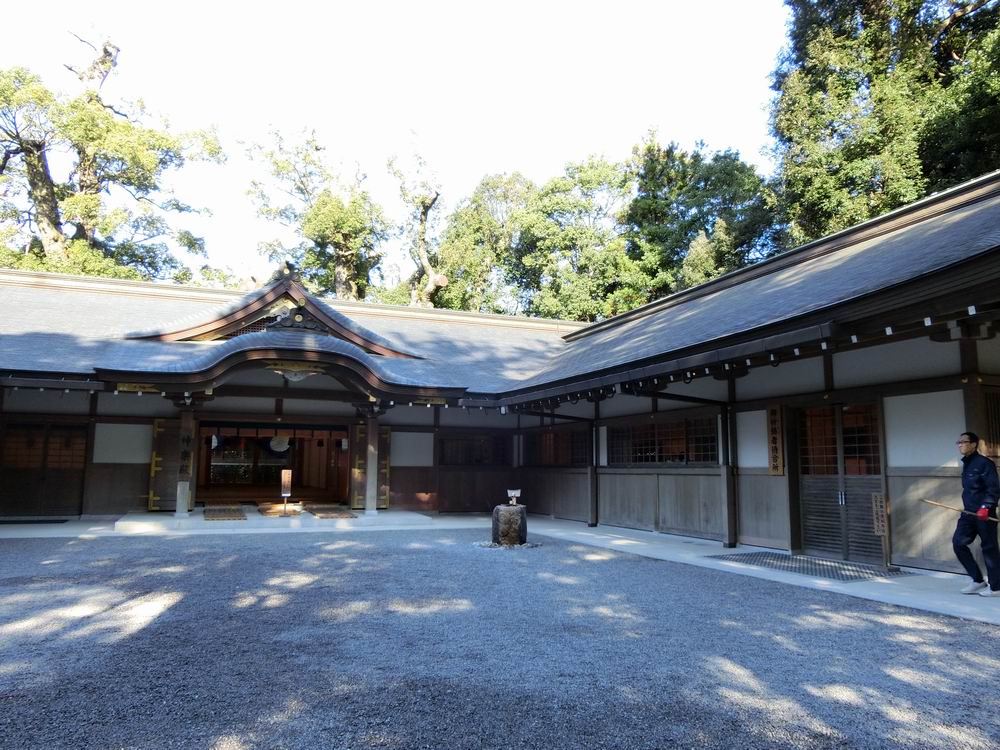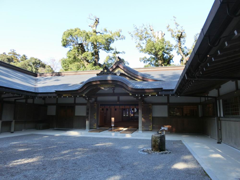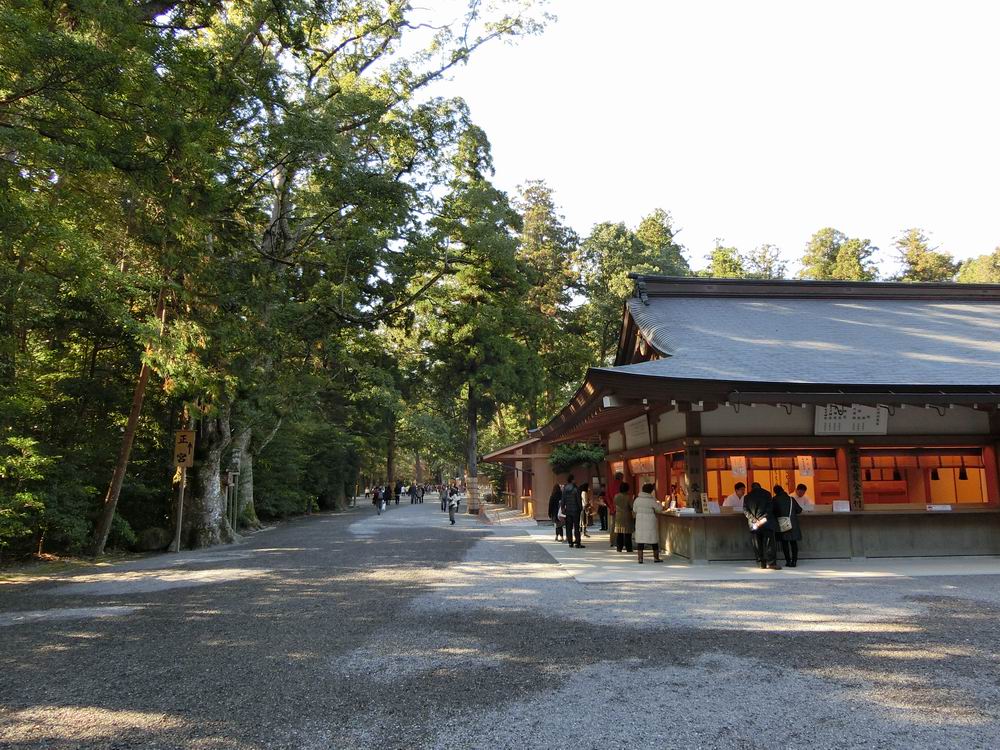 外宮の参道の途中にある建物で、外宮入口と正宮の中間あたりに位置しています。お札、お守りなどはこちらで売っており、買い求める人が立ち寄っていました。お守りはシンプルに「御守り」というもののほか学業、安産、開運などいろんな種類がありました。また御朱印や祈祷もこちらで受け付けています。建物の中(奥)には入ってないので、中の様子は分かりません。