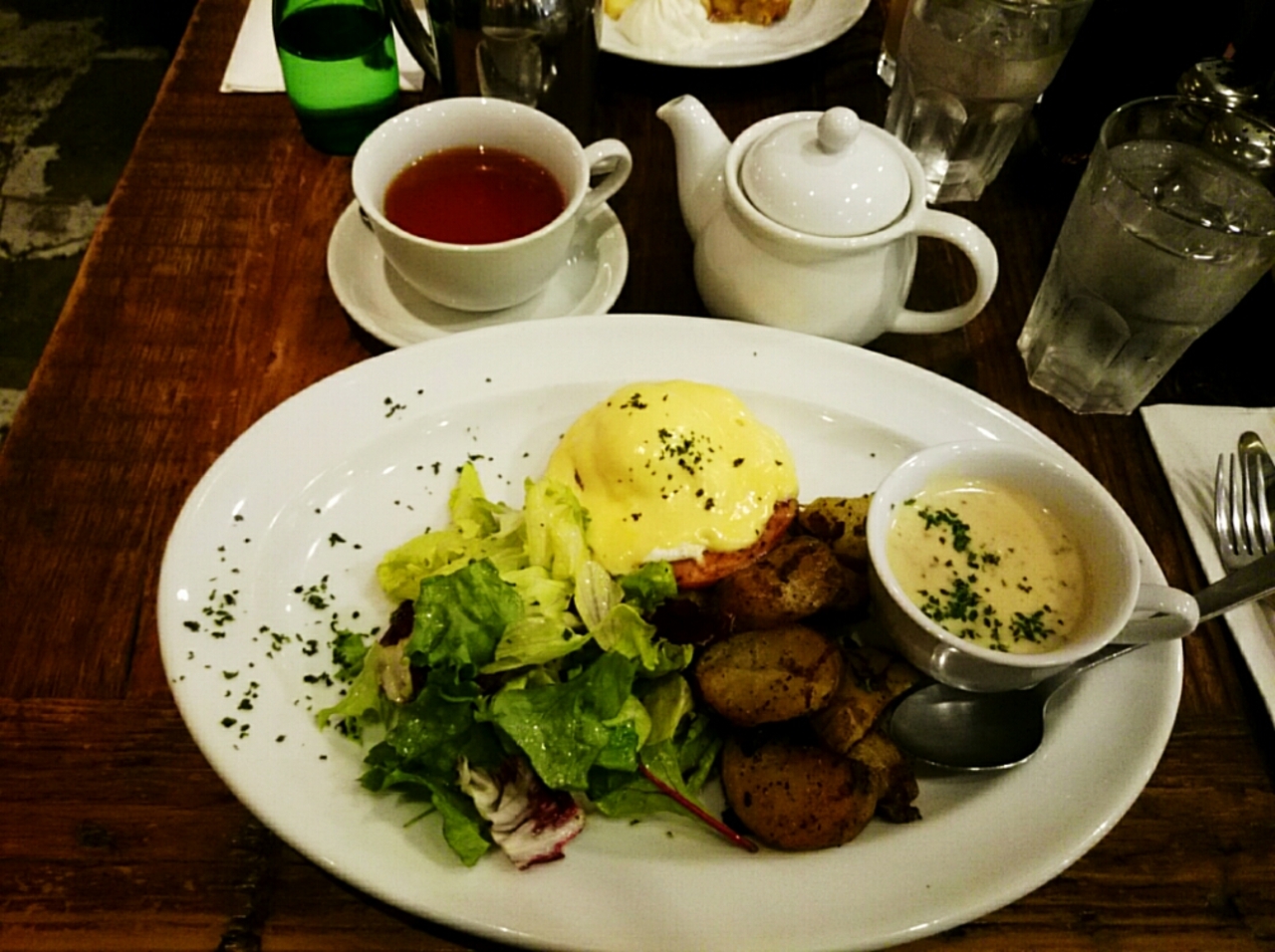 平日の15時近くに久しぶりに行ってきました。年末だからなのか、ランドマークやクイーンズタワーが物凄く賑わっていました。それほど待つことなく窓側の席に案内され、今回もランチメニューのエッグベネディクトセットとアップルパイのセットを注文しました。こちらのお店は席の間隔が狭く(窓側は少し広め)、満席だと物凄い賑やかです。今回は凄くうるさくて、会話するのも大変でした。お料理は、どれも美味しいです。パイ系のスイーツは、レジ横でテイクアウトもできます(夏は生クリームはつきません)。タイミングをずらして、今度は空いている時に行こうと思います。お店のスタッフは若い女性ばかりなのですが、注文を取りに来てくれた女性はにこやかでしたが、最後のレジの対応をしたスタッフは笑顔もなくツンツンしていたのが気になりました。
