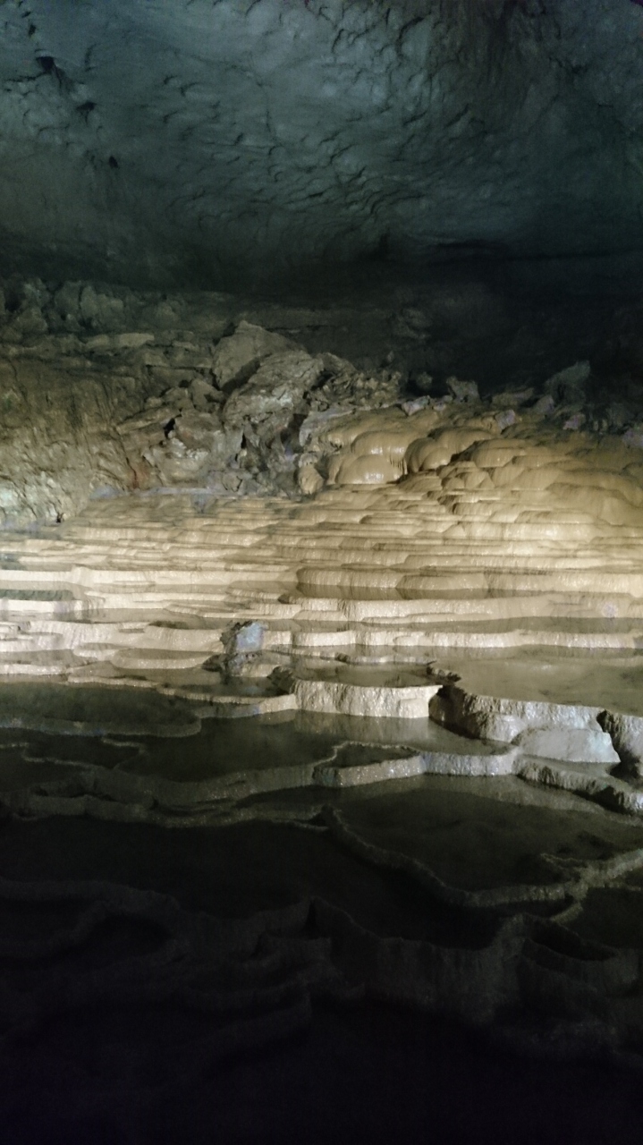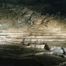 山口県の秋吉台・秋芳洞の中にあるスポットのひとつです。鍾乳洞の中で、だんだんになったお皿みたいな形状になっています。押しボタン式の音声案内があるのがいいですね。最近は英語版、中国語版、ハングル版、などもありますよ。