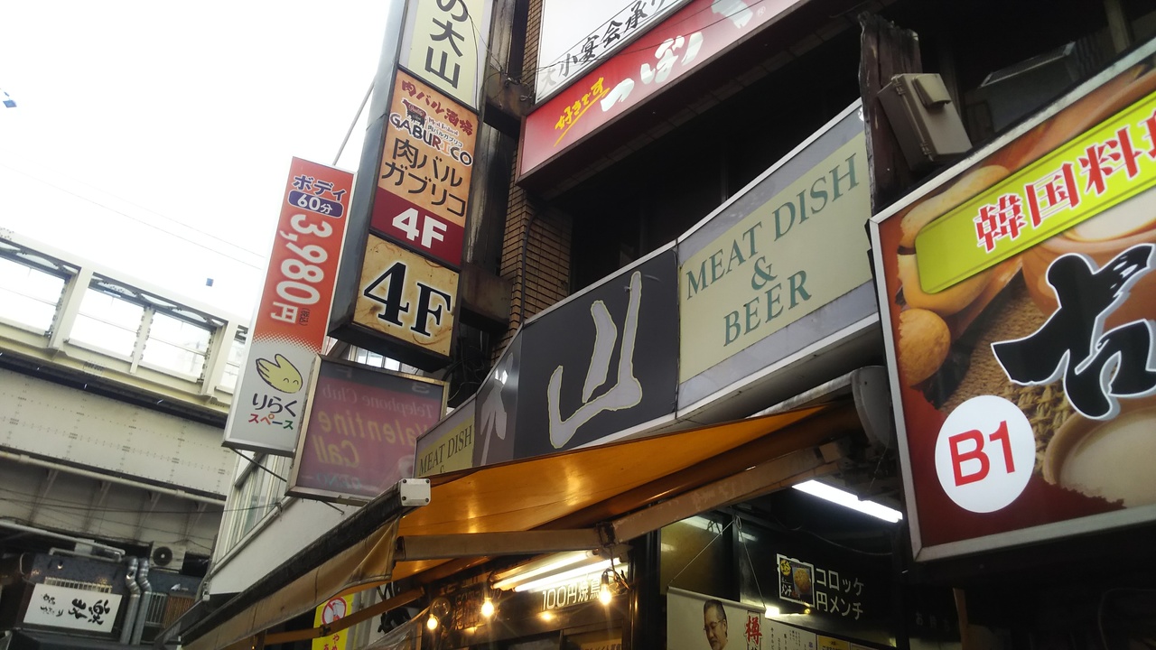 こちらは店内はステーキレストランになっていて、おいしいお肉をそこそこ安く満腹になれますが、今回は店先の立ち飲みスペースを利用しました。飲み物はビールなど300円前後で楽しめ、つまみはコロッケやメンチカツをカウンターで注文します。コロッケは破格の60円、なのにおいしいです。平日の夕方前はドリンク半額でなおコスパ高しです。