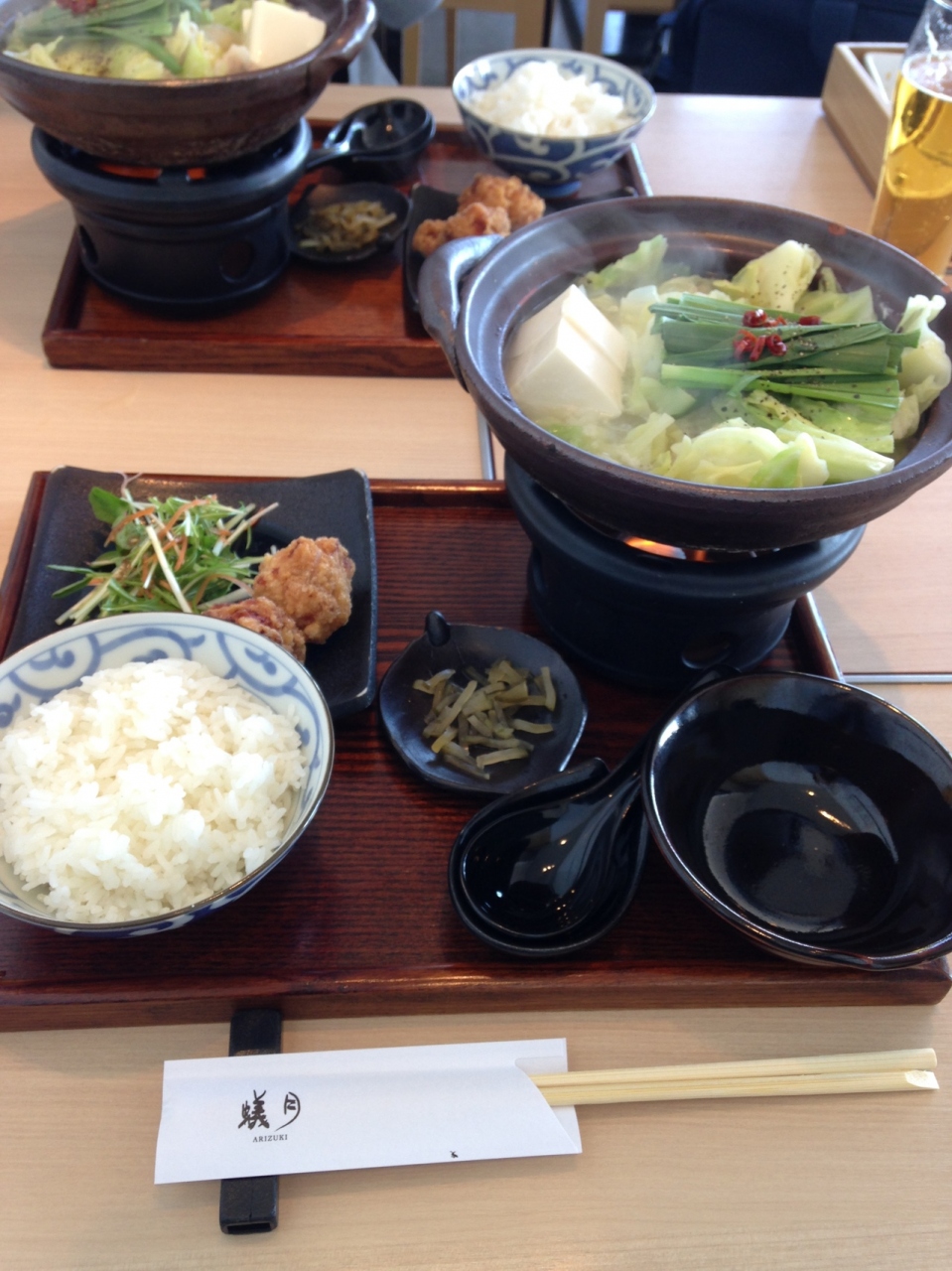 恵比寿店には何回か行っていましたが、予約をしないとなかなかはいれないのですぐに行きたくなっても行けなかったのですが、こちらはランチなら予約せずに少し待つくらいで入れました。場所がら土日以外はそんなにランチタイムなら混んでいません。ただ、モツ鍋を昼に食べたのは初めてで、セットで1人用で食べたので、やはり夜に食べる時と比べると少し味気ないかな…とゆう気はしますが…笑。しかし、お味はおいしかったです。高い場所なので開放感もあり、綺麗ですし、わたしはやはりモツ鍋を食べるなら、蟻月さんが好きです。