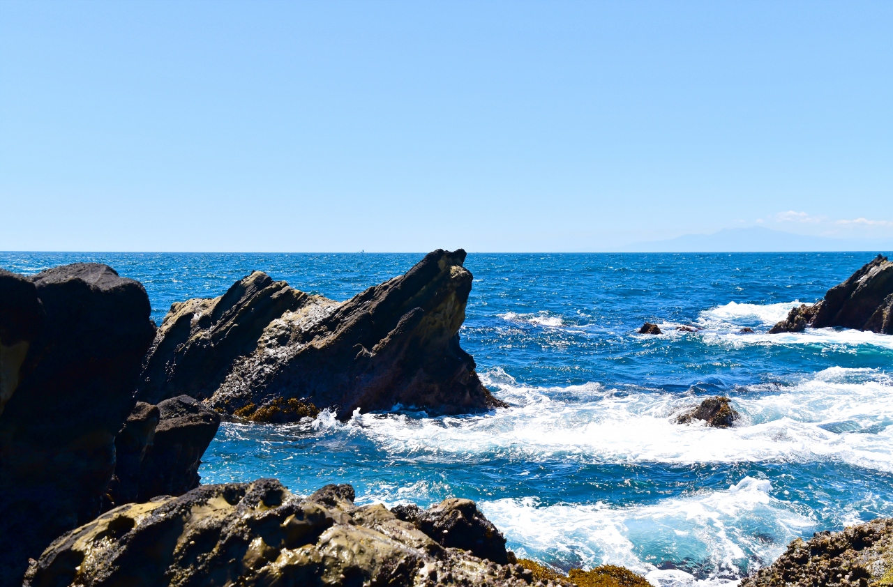 美しい岩場が続く荒崎海岸。海沿いに長浜まで延びるハイキングコースを歩くと、三浦半島屈指の景観といわれる海岸美が存分に楽しめます。 「夕日の丘」の展望台からは富士山や天城連山などが望めます。