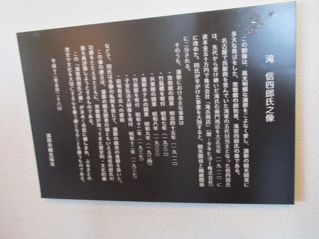 蒲郡市が運営している記念館で、蒲郡クラシックホテルの元を建てた繊維問屋滝兵(現タキヒヨー)の五代目、滝信四郎が創業した料理旅館・常盤館を忍んで、蒲郡市内にあった同時期の建物を模倣復元した建物を「海辺の文学記念館」としているそうです。