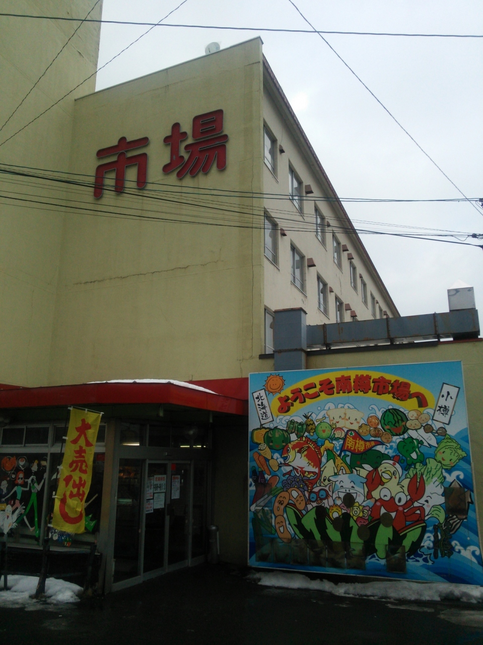南小樽駅から徒歩10分ほどの市場。南小樽市場共同組合、南樽市場は、小樽市民の台所です。そして観光客にとっても、新鮮な海産物、農産物が安く買えるので、お土産探しにも重宝する市場です。