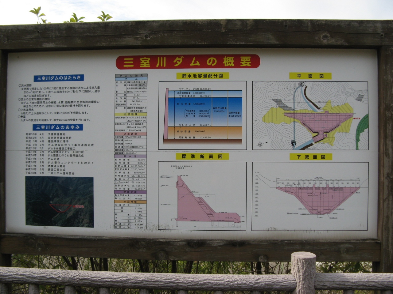 ダムサイト左岸に管理所があり、その近くにある展望台にダムの仕様や構造を示した説明板がありました。