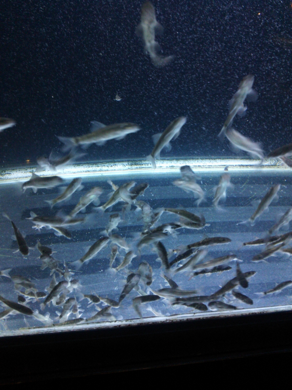 サケの水族館ということでしたが、成魚はもちろん、孵化したばかりの稚魚から成魚へ成長する過程を観察できます。