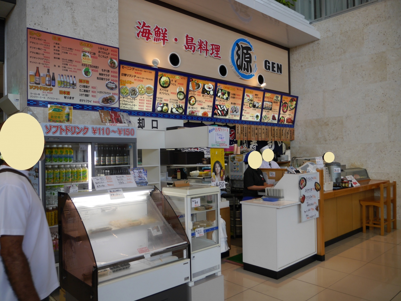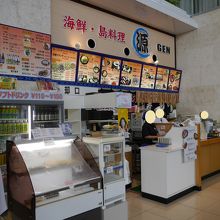 石垣空港一階にあるフードコートの中の一店です。海鮮、島料理の看板が出ています。モーニング、日替わりランチがあります。そばうどん以外ににぎりやロールものの寿司があります。注文してポケベルを渡され、出来上がると商品を受け取ります。すぐ前が共用のテーブル席になっているので、ここでも食事ができます。巻きずしを頼んで機内にて食べましたが、ボリュームはありました。