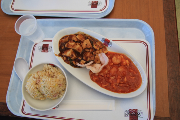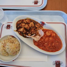 チャーハンと中華2点を選択できるLコンボ880円をいただきました。中華は、エビチリと麻婆豆腐にしました。小食の方なら適量だと思われます。甘党の自分には麻婆豆腐はちょっと辛かったかな。