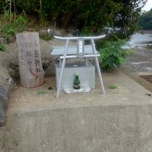 小さな防潮堤のわきの階段を下りていく.少し高めに参道ができている.